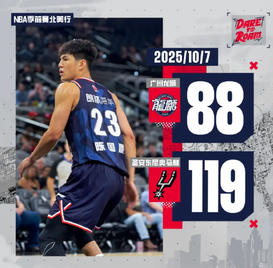 这一场比赛没有什么胜负悬念,两队的硬实力差距太大,即便广州龙狮男篮派出了多名试训外援,依旧没有办法跟马刺队抗衡。最终,马刺队以119比88大胜广州龙狮男篮31分。